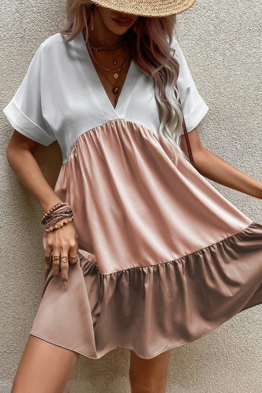 Color Block Short Sleeve Top and Drawstring Pants Set