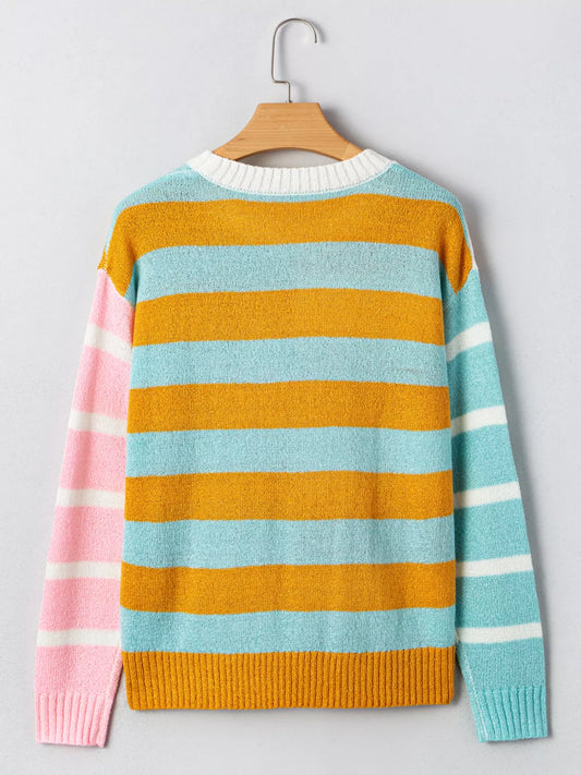 Color Block V-Neck Button Down Long Sleeve Cardigan