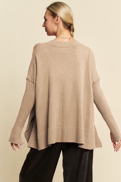 Davi & Dani Round Neck Dropped Shoulder Long Sleeve Knit Top