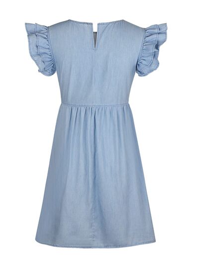 Full Size Ruffled Round Neck Cap Sleeve Denim Dress