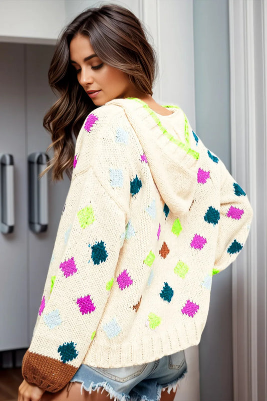 Geometric Dropped Shoulder Hooded Sweater