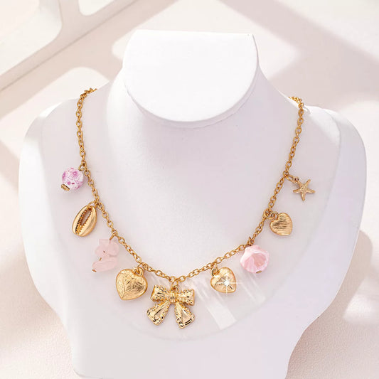 Heart and Butterfly Bow Ocean Multi-Pendant Necklace