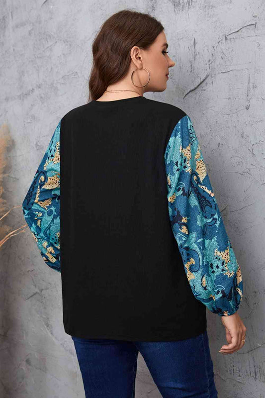 Melo Apparel Plus Size Printed Sleeve Round Neck Blouse
