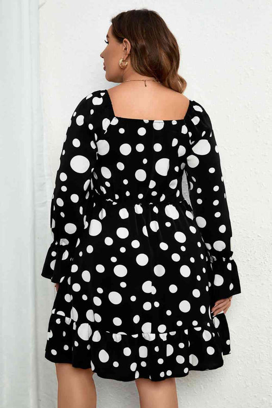 Melo Apparel Plus Size Polka Dot Sweetheart Neck Flounce Sleeve Mini Dress