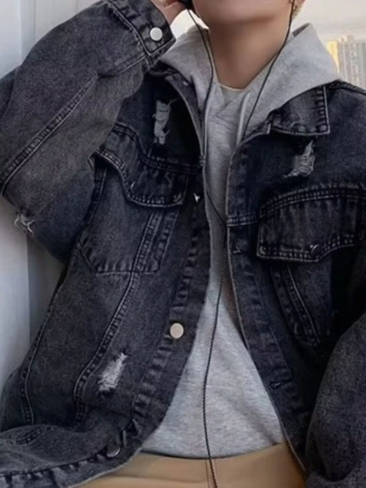 Men's Full Size Distressed Button Up Denim Jacket Plus Size