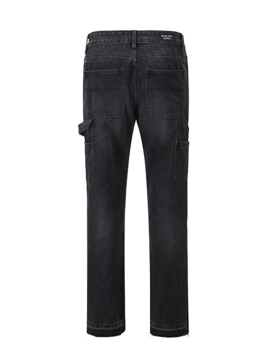 Men's Distressed Raw Hem Straight Jeans