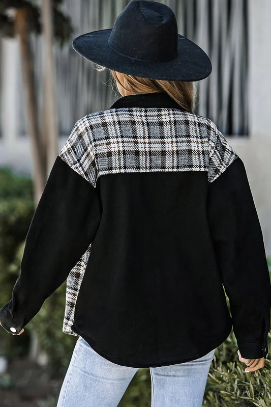 Plaid Patchwork Collared Neck Shacket
