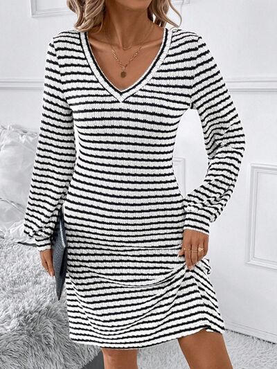 Striped Zip-Up Long Sleeve Ribbed Sweater