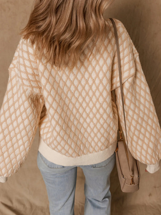 Textured Button Down V-Neck Long Sleeve Cardigan