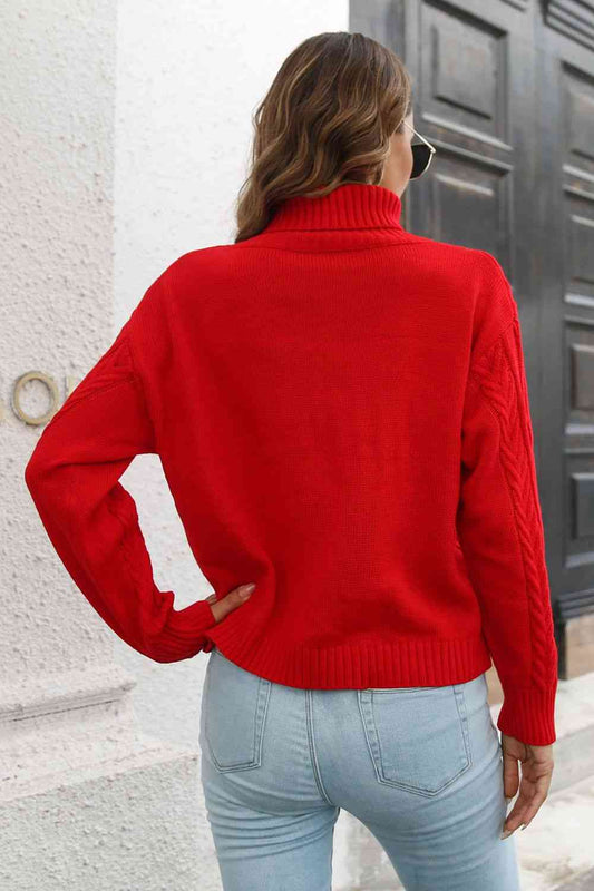 Turtleneck Long Sleeve Top and Drawstring Pants Sweater Set