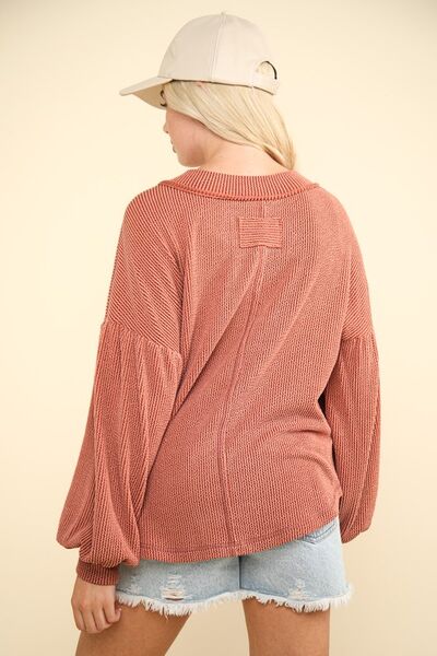 VERY J Exposed Seam V-Neck Ribbed Knit Top