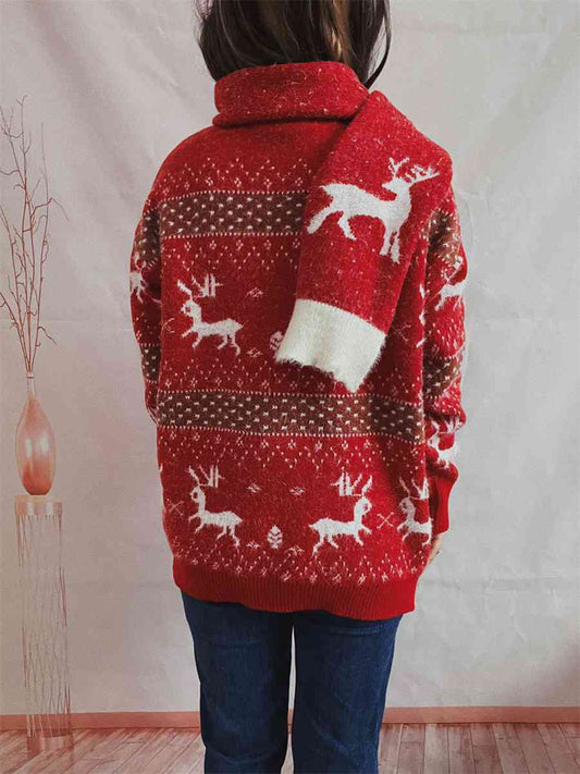 Christmas Element V-Neck Long Sleeve Mini Dress