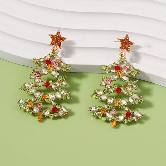 Christmas Reindeer Earrings with Colorful Rhinestones