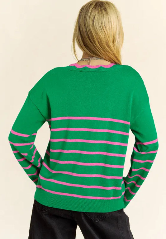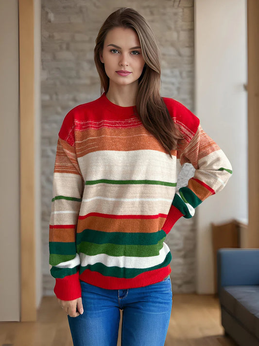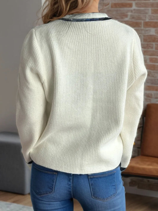 Contrast Trim Round Neck Dropped Shoulder Sweater