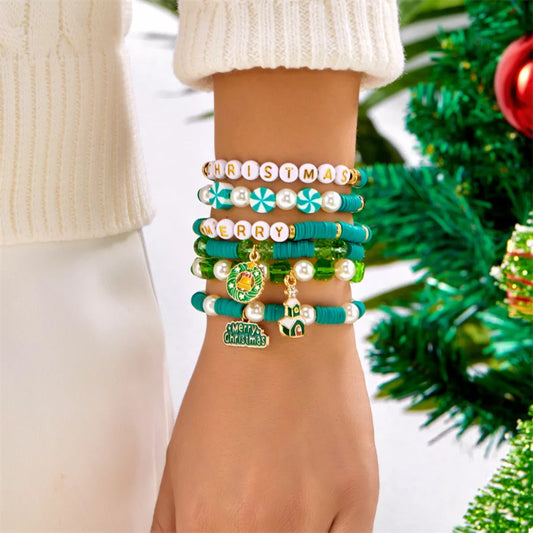 6-Piece Christmas Beaded Bracelet with Pearl Accents