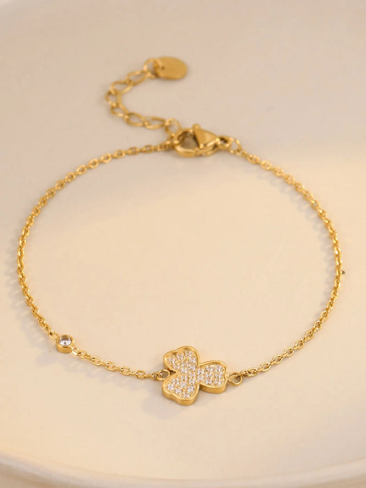 18K Gold-Plated Alloy Rhinestone Leaf Bracelet