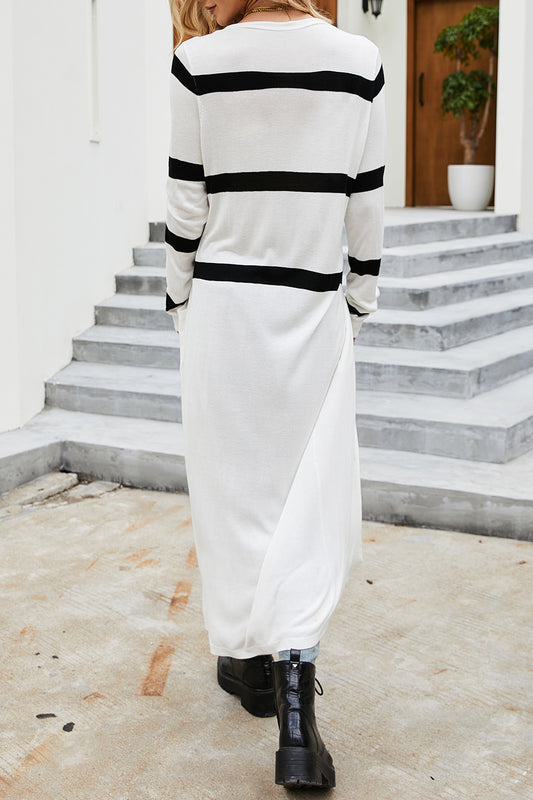 Open Front Long Sleeve Striped Cardigan with Pockets