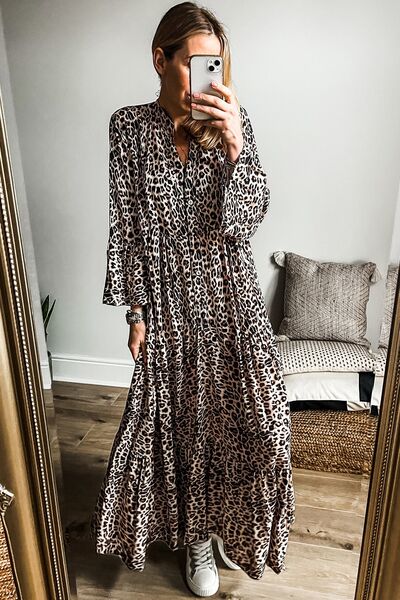 She + Sky Full Size Printed V-Neck Puff Sleeve Tiered Dress Plus Size