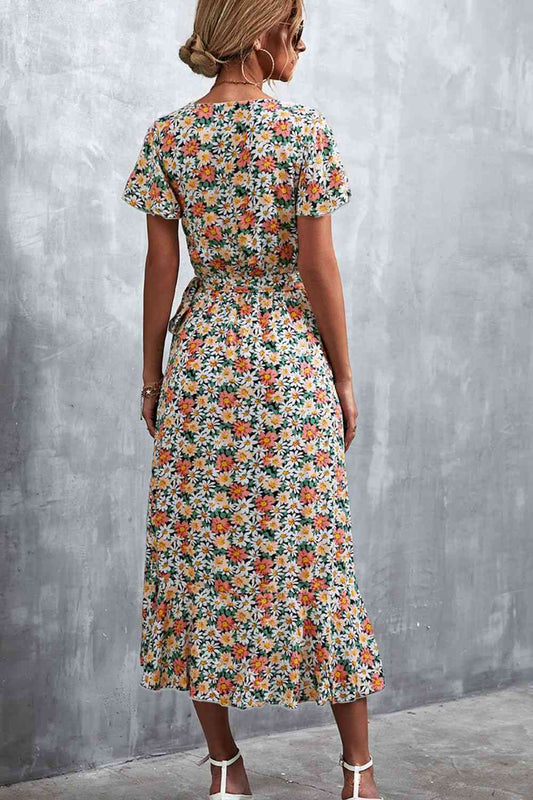 Floral Surplice Neck Tied Midi Dress