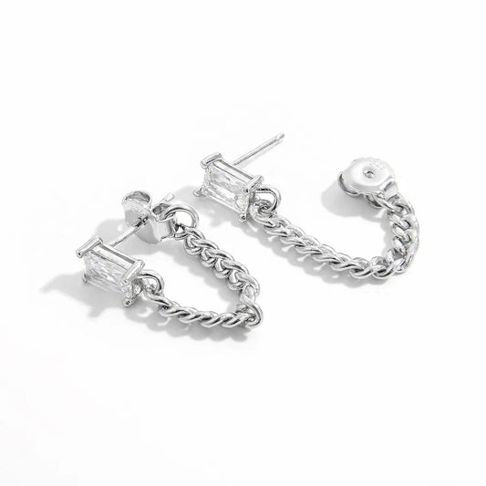 925 Sterling Silver Moissanite Hoop Drop Earrings