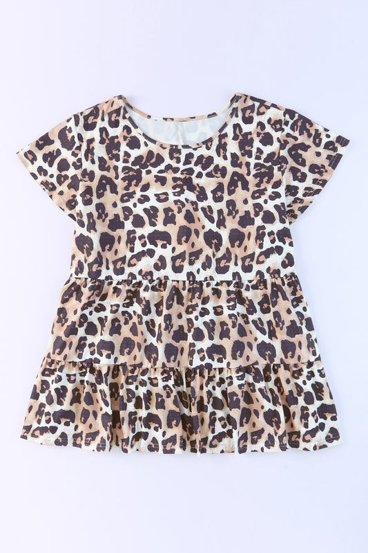 Plus Size Layered Printed Round Neck Short Sleeve Blouse