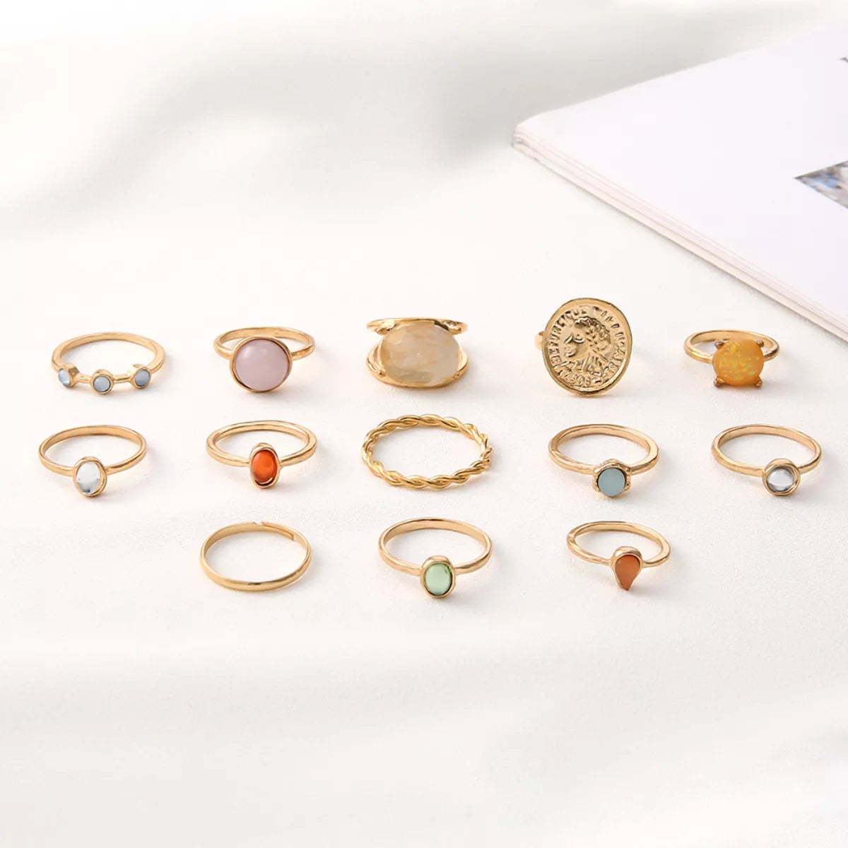 13 Piece 18K Gold-Plated Minimalist Ring Set
