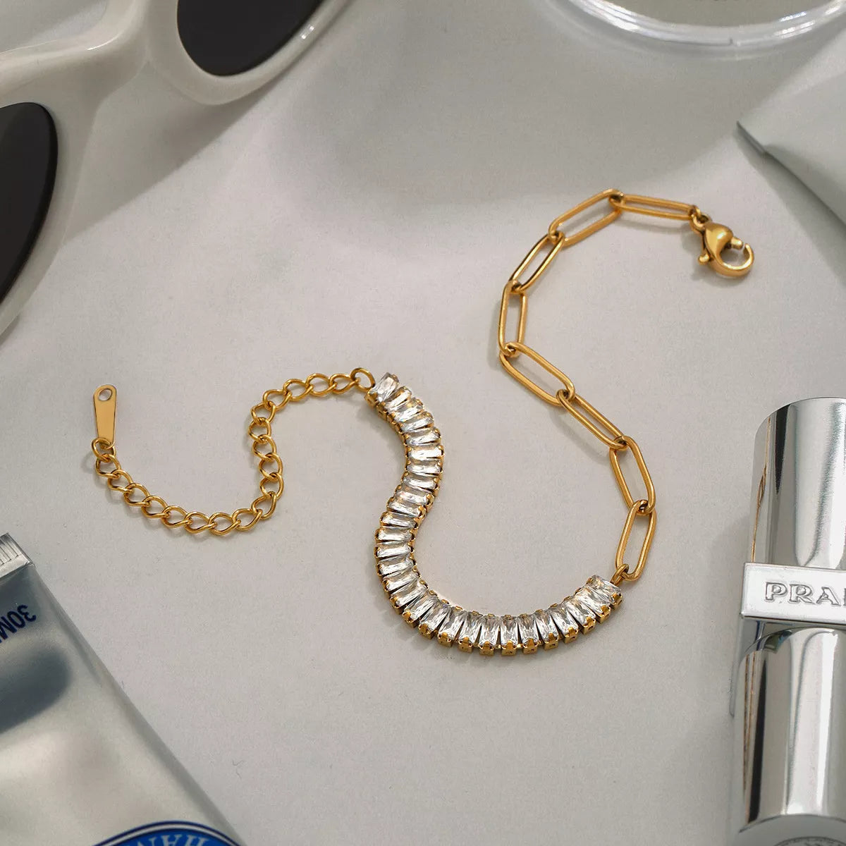 18K Gold-Plated Stainless Steel Rhinestone Chain Bracelet