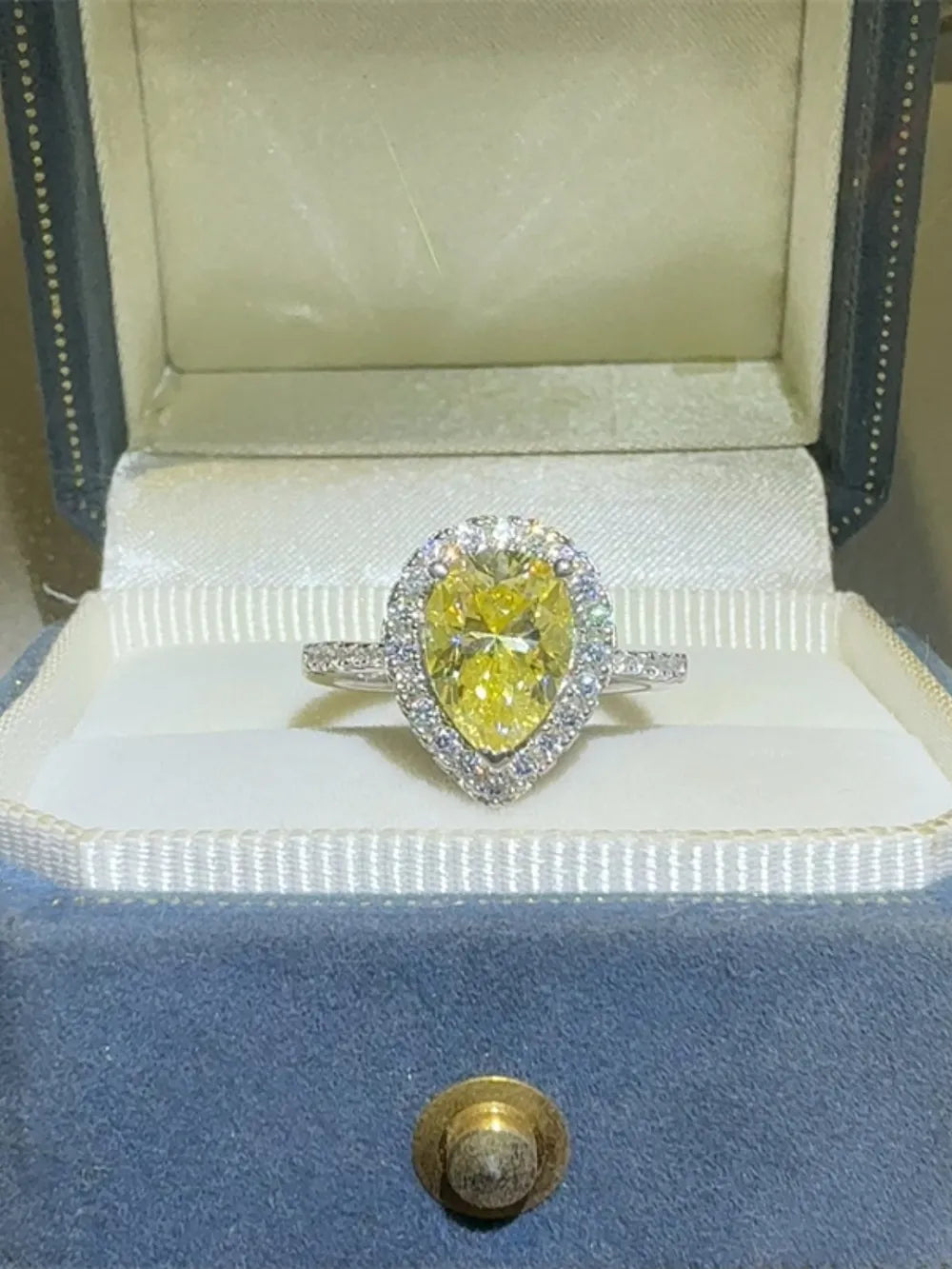 2 Carat Moissanite 925 Sterling Silver Teardrop Shape Ring