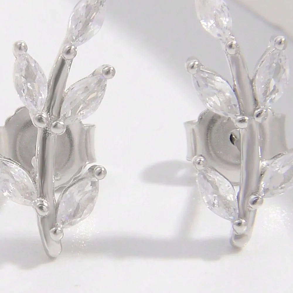 925 Sterling Silver Zircon Leaf Shape Earrings