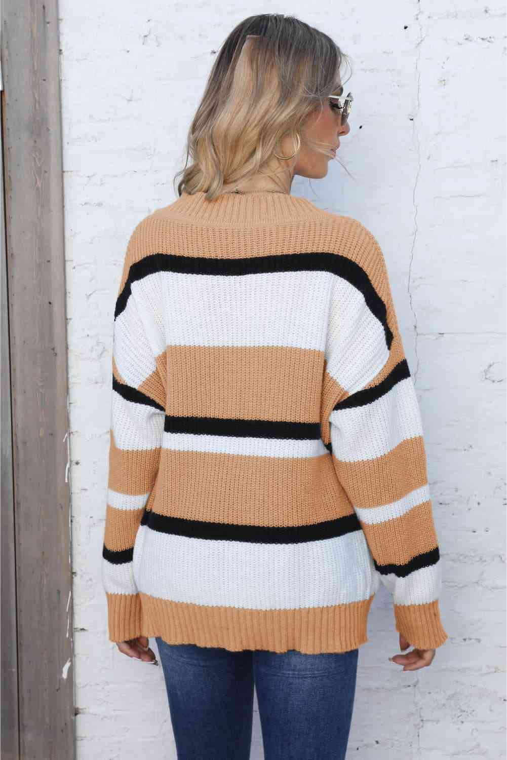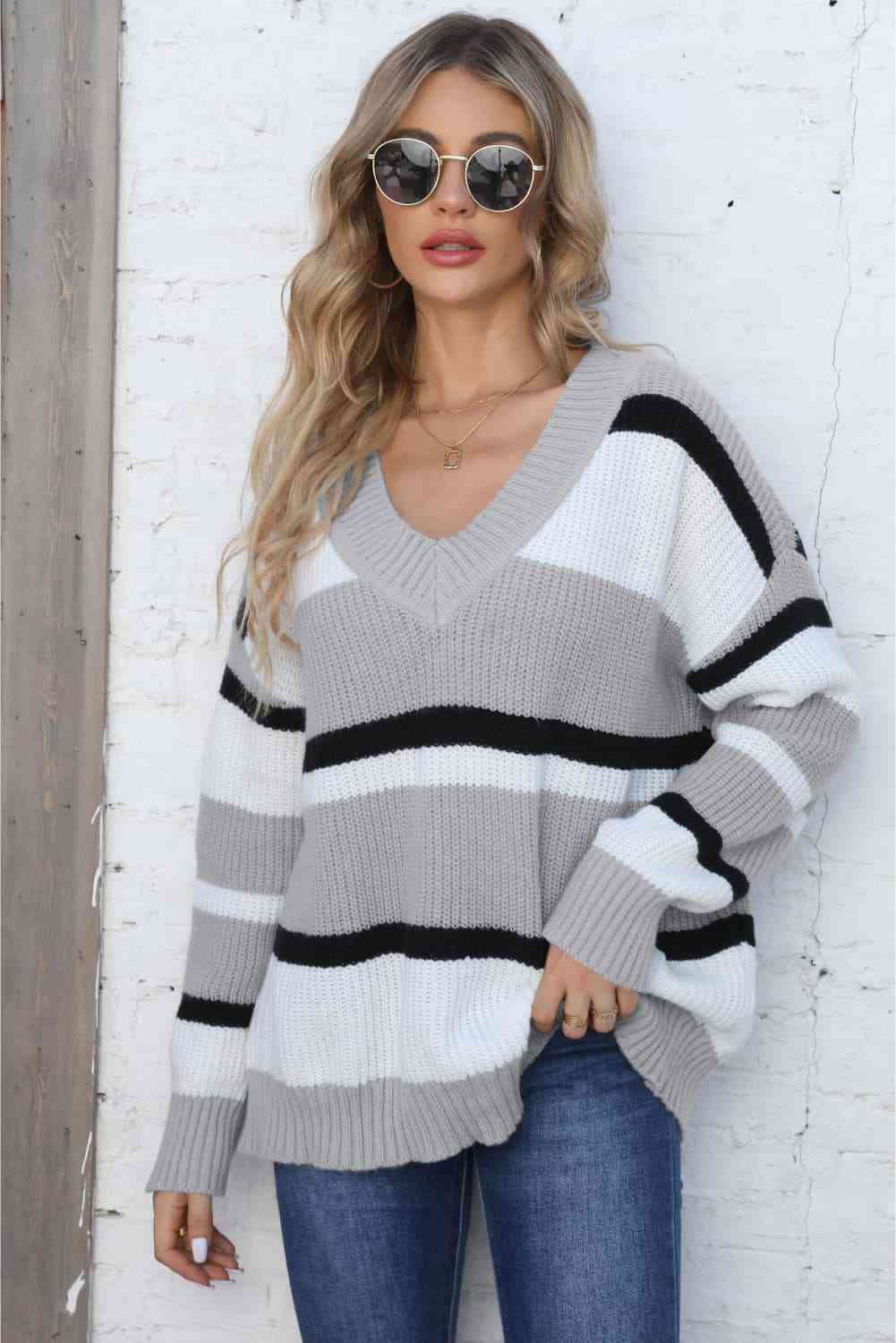 Color Block V-Neck Dropped Shoulder Sweater