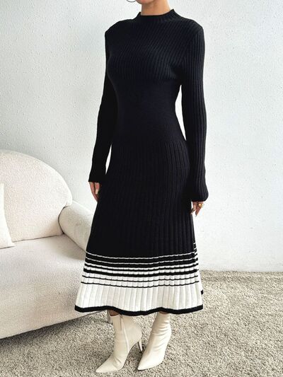 Contrast Mock Neck Long Sleeve Sweater Dress