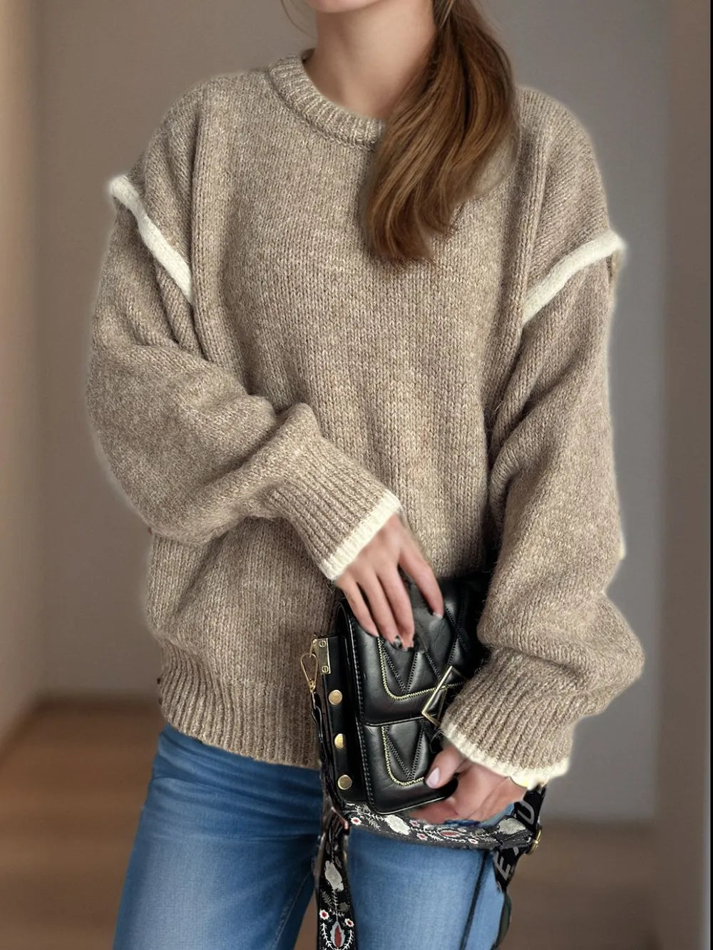 Contrast Trim Round Neck Dropped Shoulder Sweater