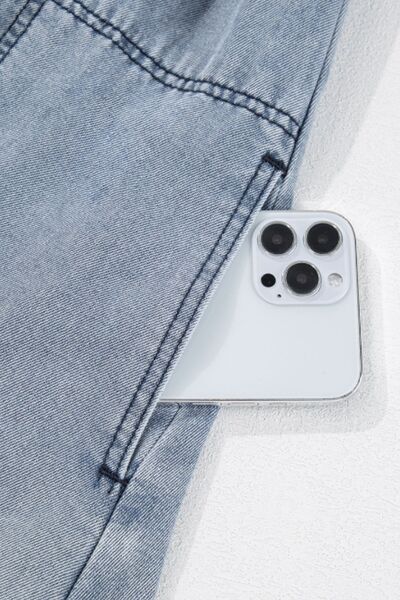 Cutout Round Neck Balloon Sleeve Denim Dress