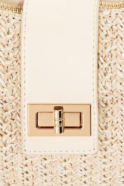 This bag displays a vibrant straw braid hobo style. Unveil modern elegance with this subtly intricate accessory.