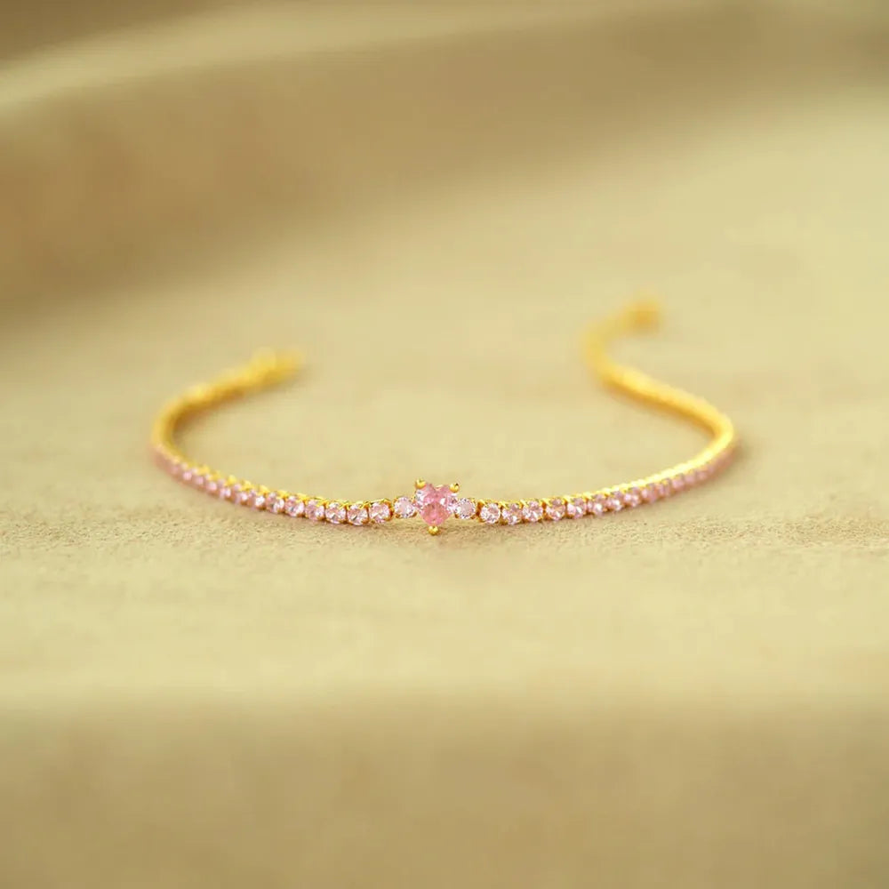 Heart Shape Inlaid Zircon 18K Gold-Plated Bracelet