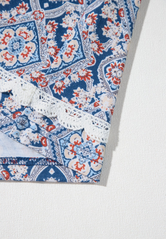 Lace Detail Geometric Round Neck Long Sleeve Top