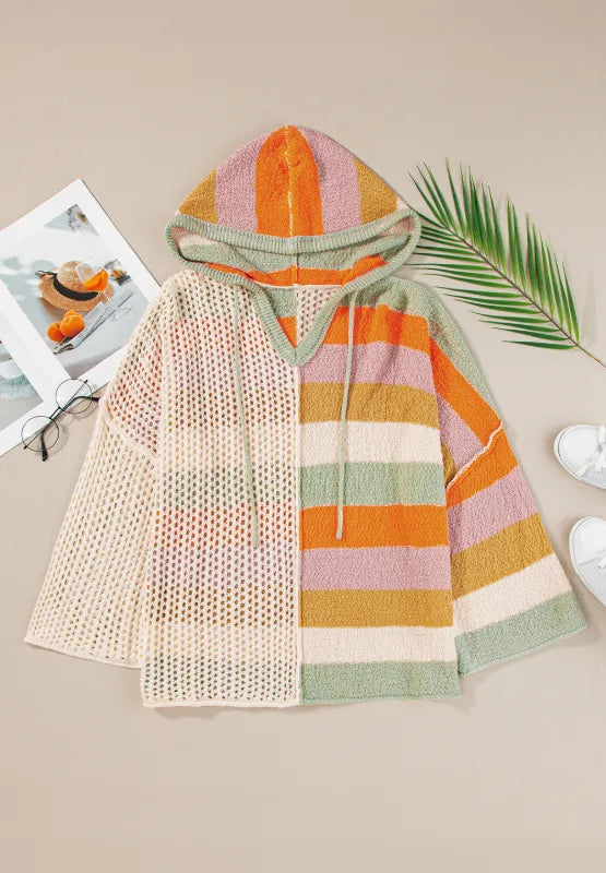 Openwork Color Block Hooded Sweater