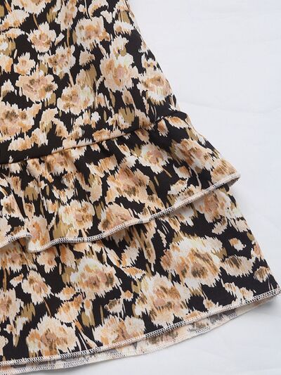 Perfee Printed Tie Neck Long Sleeve Mini Dress