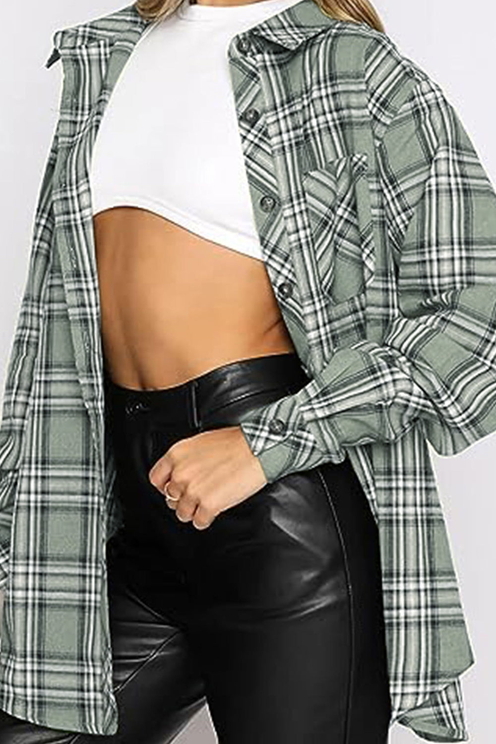 Plaid Collared Neck Long Sleeve Shirt