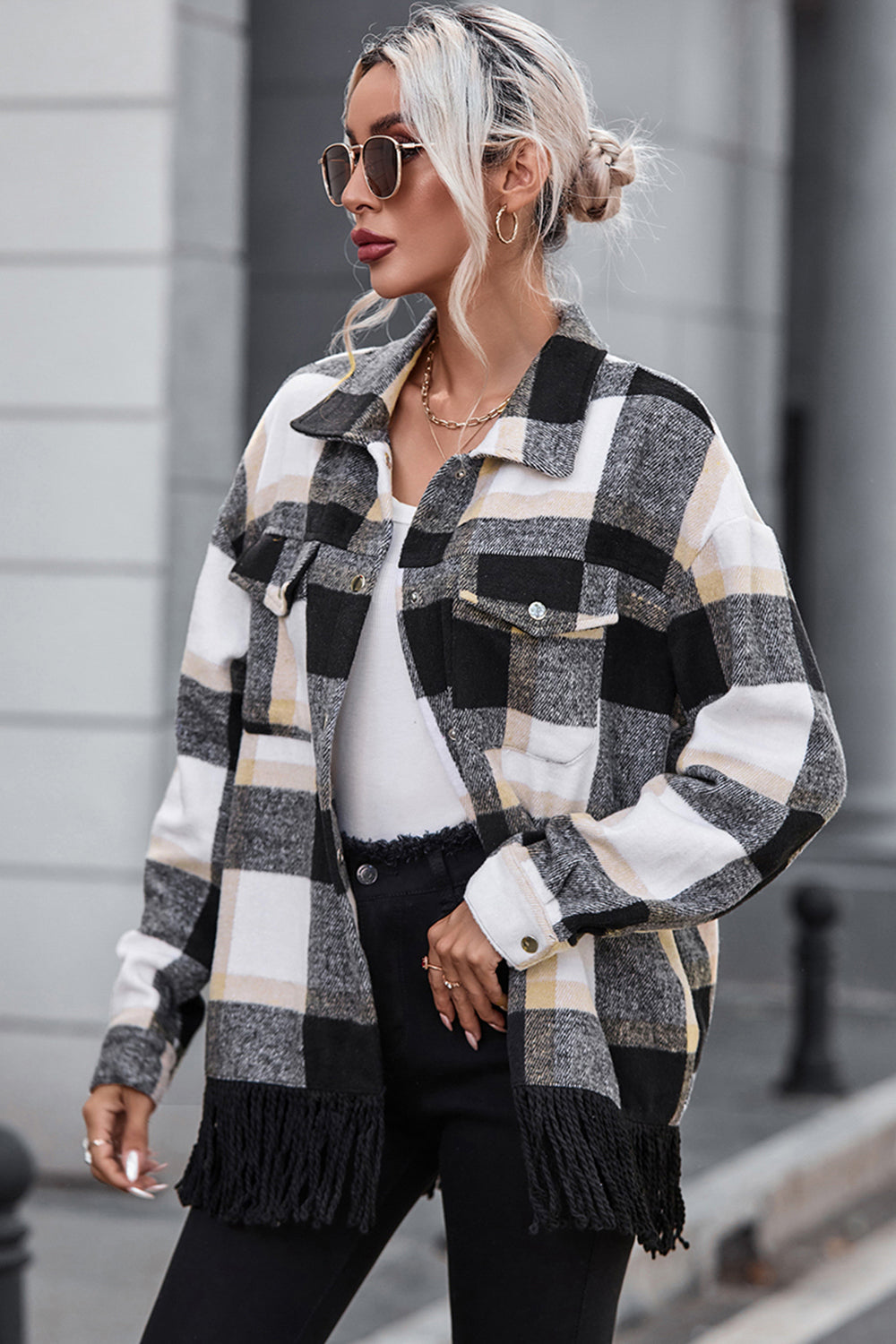 L:front length 25.4 in, shoulder 23.4 in, bust 46 in, sleeve length 21.8 in