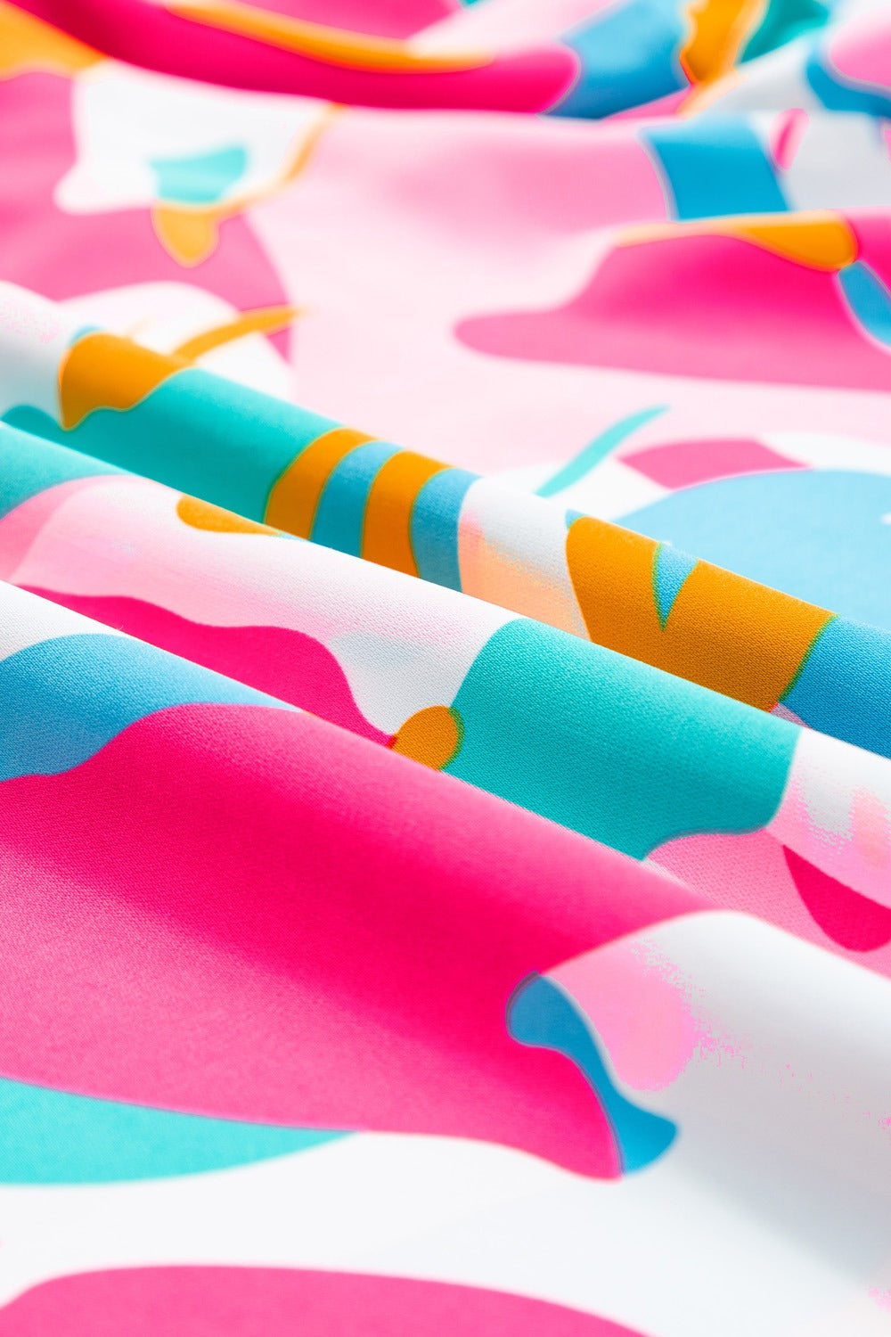 Plus Size Ruffled Printed Notched Cap Sleeve Blouse