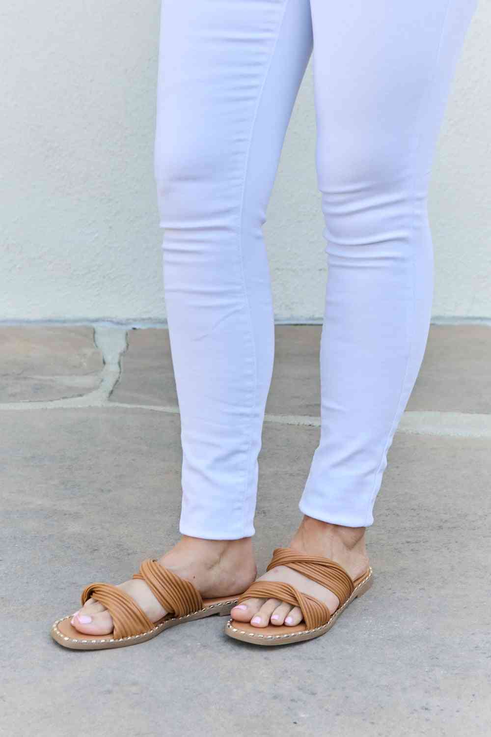 Crafted with meticulous attention to detail, these sandals are designed to elevate your summer footwear collection with their unique twist and edgy stud embellishments. Made from high-quality faux leather, these sandals offer a cruelty-free alternative to traditional leather, without compromising on style or durability. The faux leather material is soft, supple, and comfortable, ensuring a luxurious feel against your skin. The standout feature of these sandals is the double strap design with a trendy twist. The intertwining straps add a touch of elegance and uniqueness to your outfit, making these sandals a true fashion statement. The straps securely hug your feet, providing a secure and supportive fit, allowing you to walk with confidence.