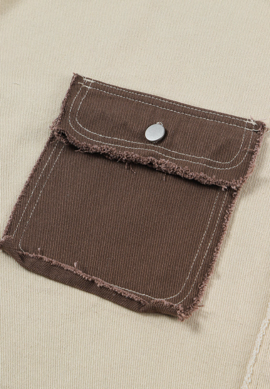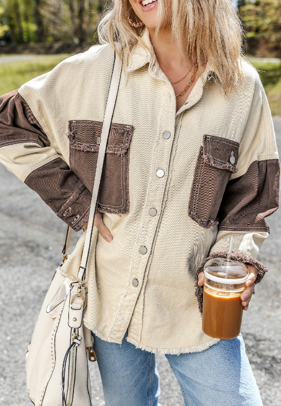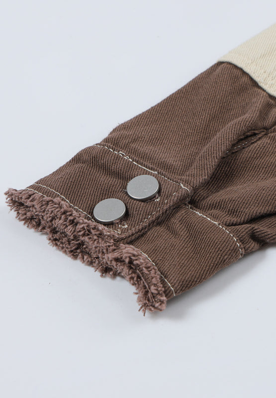 Raw Hem Contrast Collared Neck Jacket