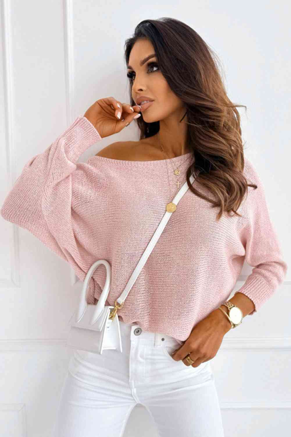 Ribbed Boat Neck Sweater