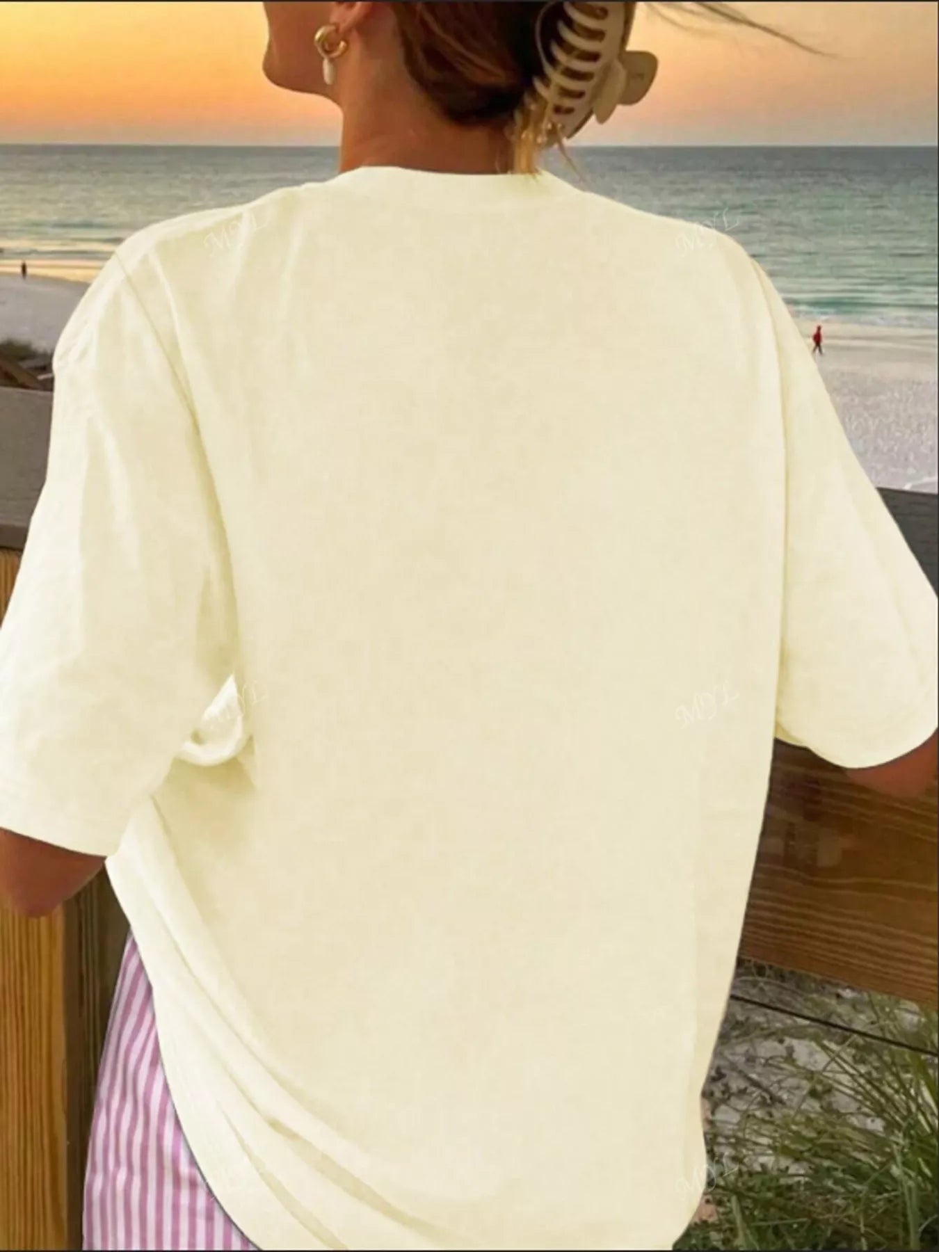 Round Neck Graphic T-Shirt and Striped Shorts Set