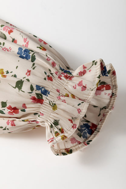 Ruched Printed Scoop Neck Long Sleeve Blouse