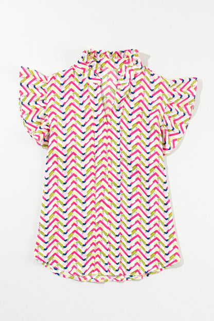 Ruffled Notched Cap Sleeve Blouse