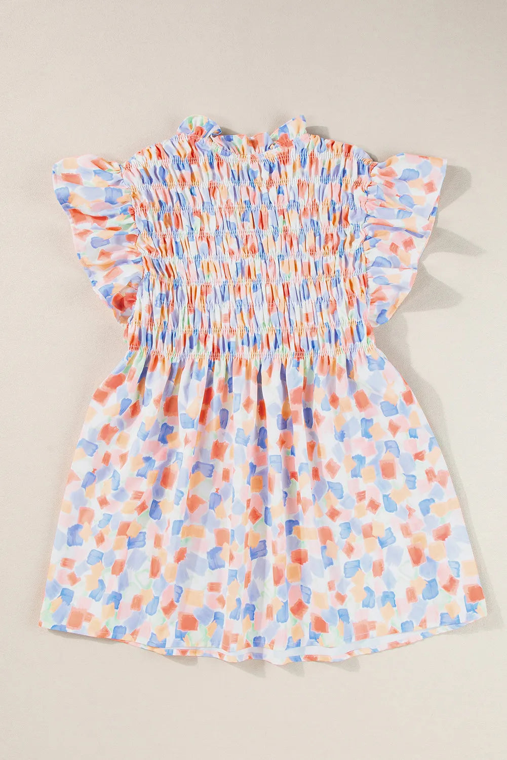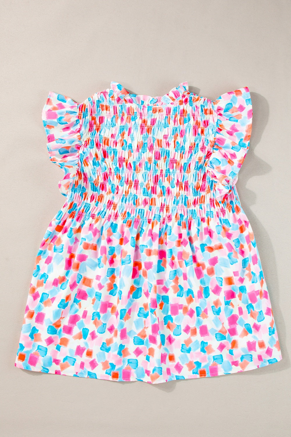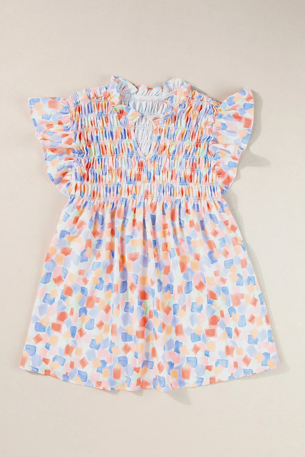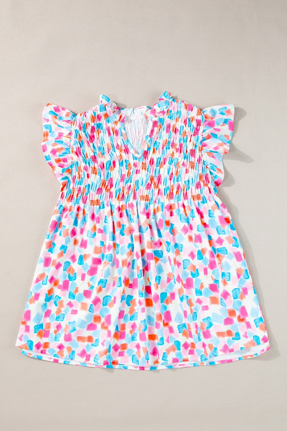 Ruffled Printed Notched Cap Sleeve Blouse