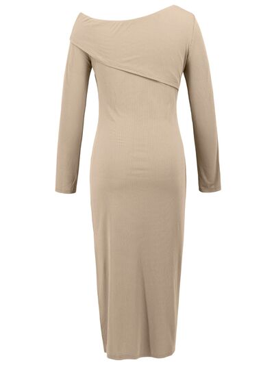 Slit One Shoulder Long Sleeve Dress