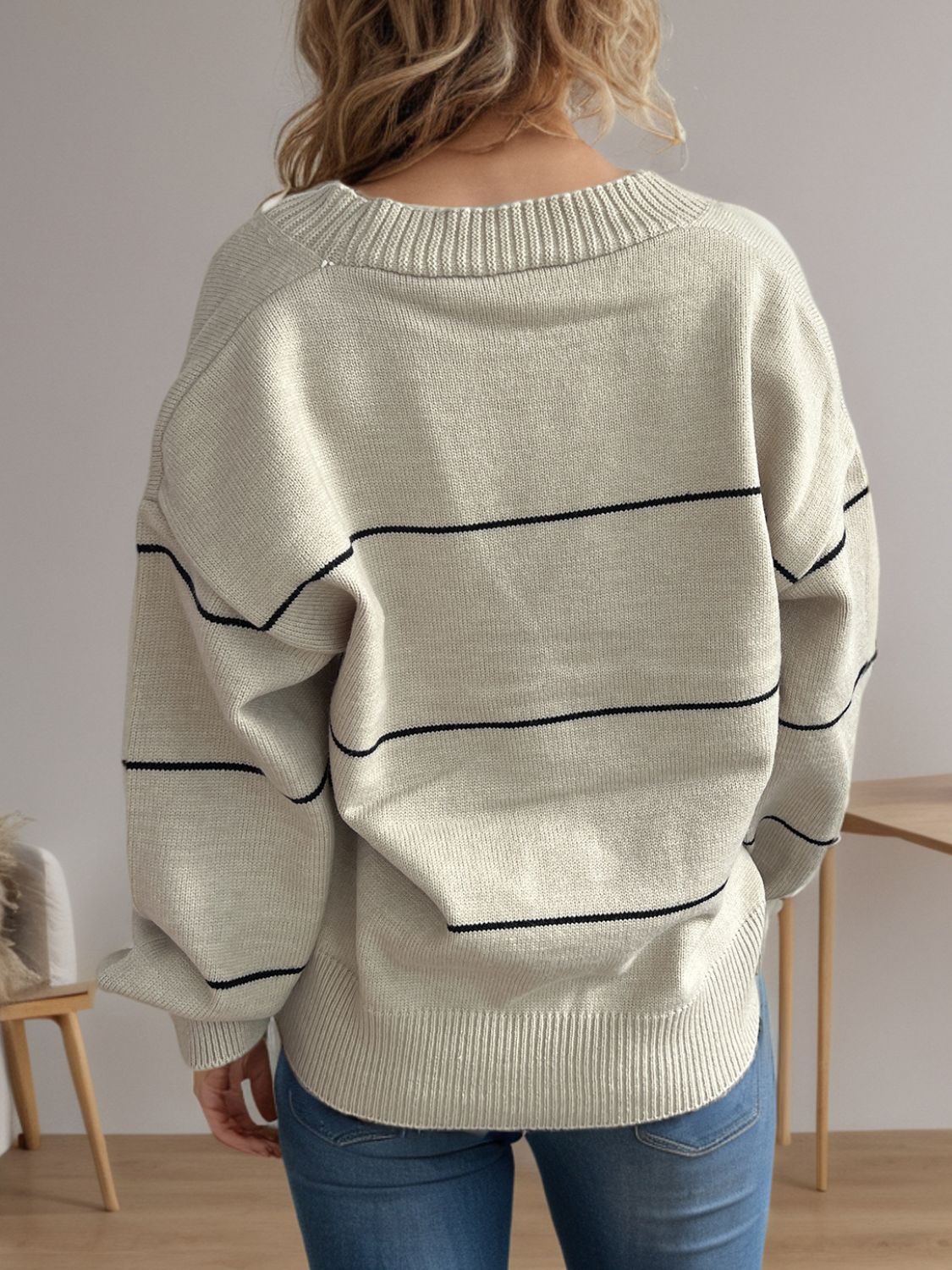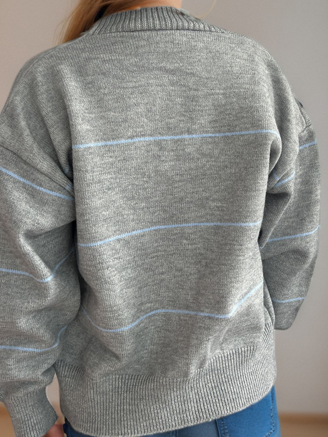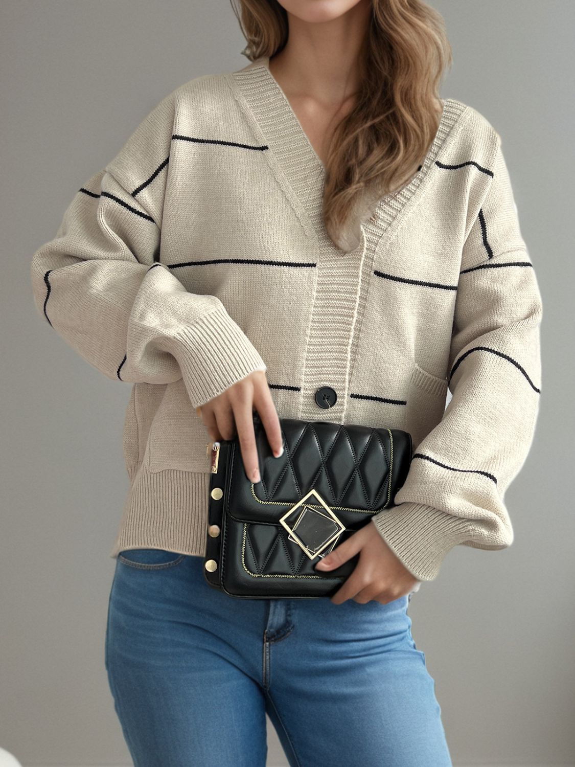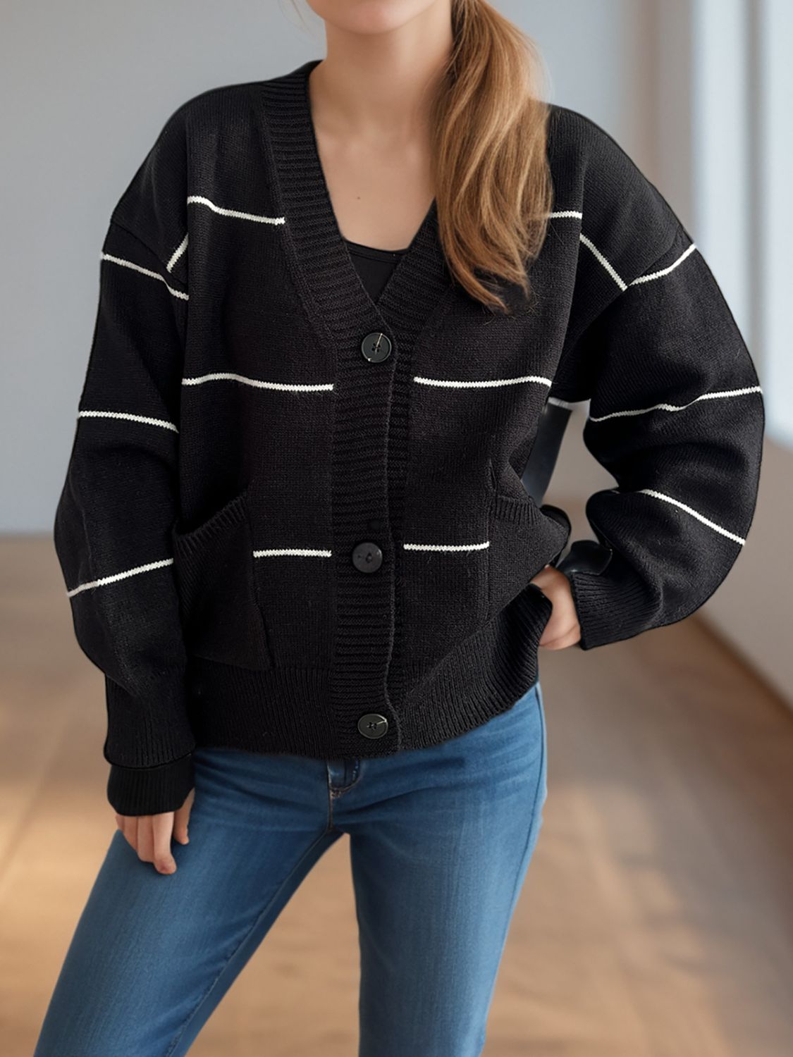 Striped Button Down V-Neck Long Sleeve Cardigan
